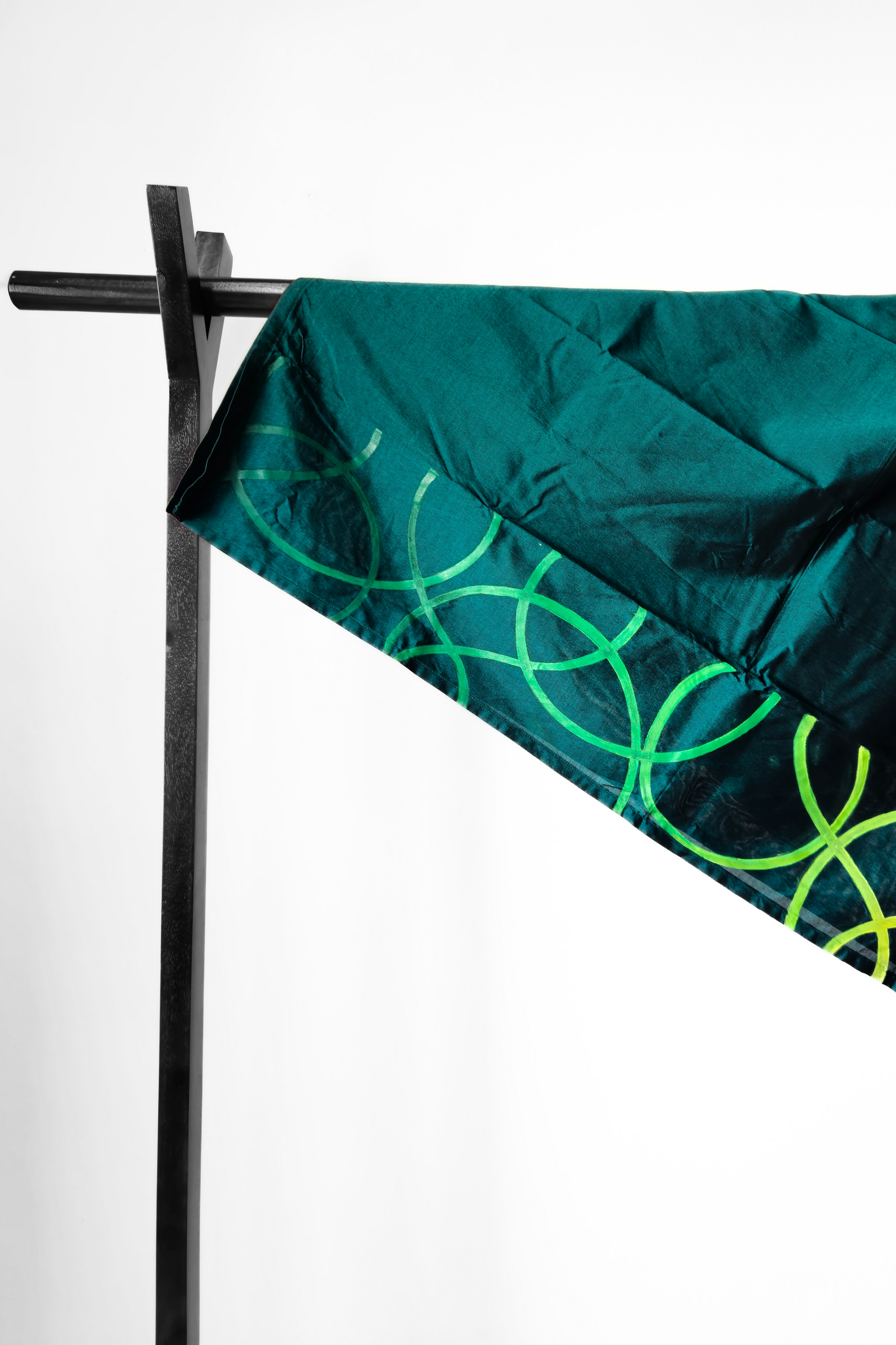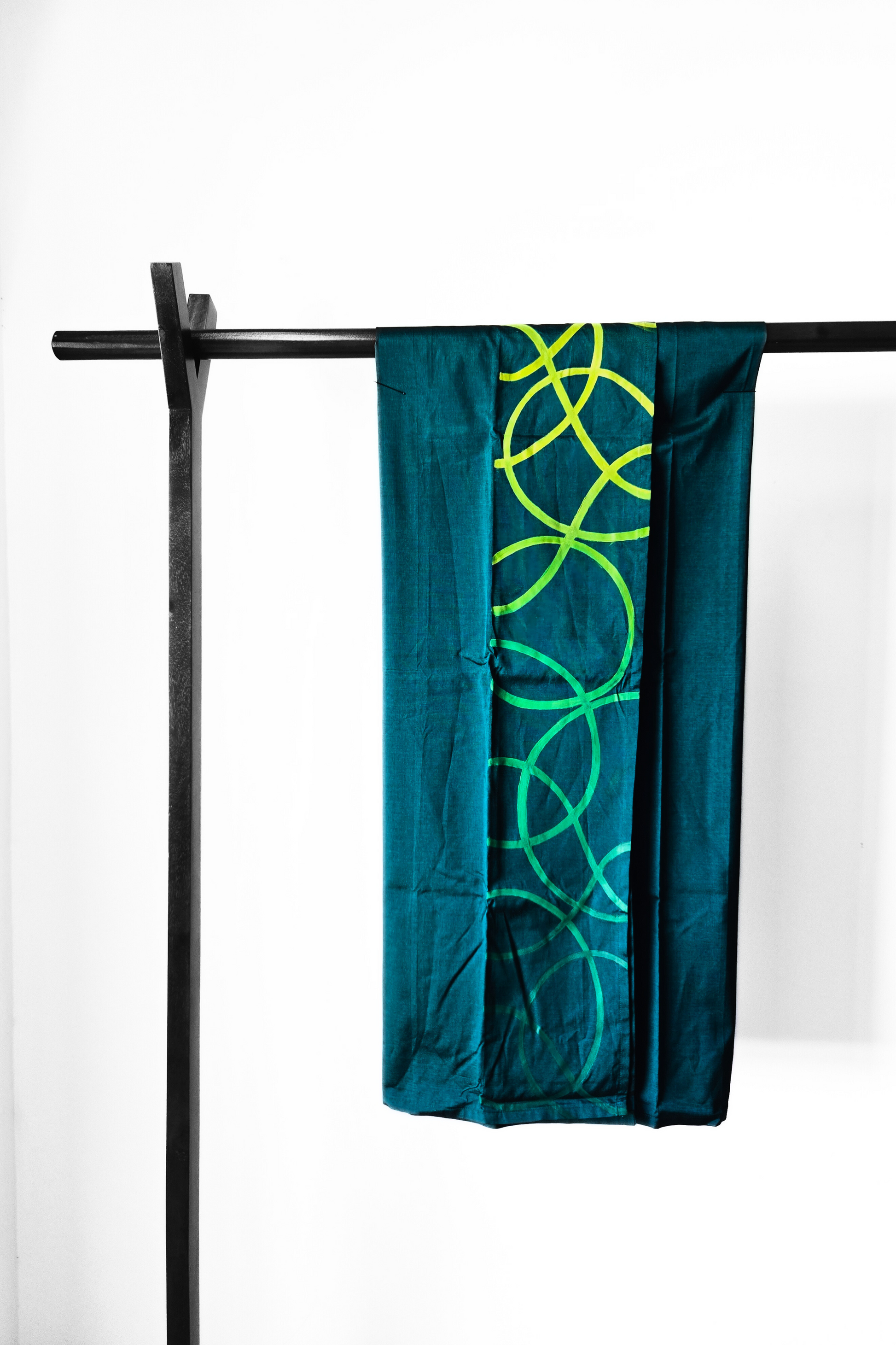 This earthy green lungi exudes calm energy with its hand-painted circular patterns in a soft yellow-green blend. The fluid, rounded motifs bring a sense of balance and organic rhythm to the rich green fabric, merging natural tones with artistic expression. Style it with a beige, off-white for a grounded yet contemporary vibe - perfect for mindful gatherings or even laid-back days with a touch of elegance.
